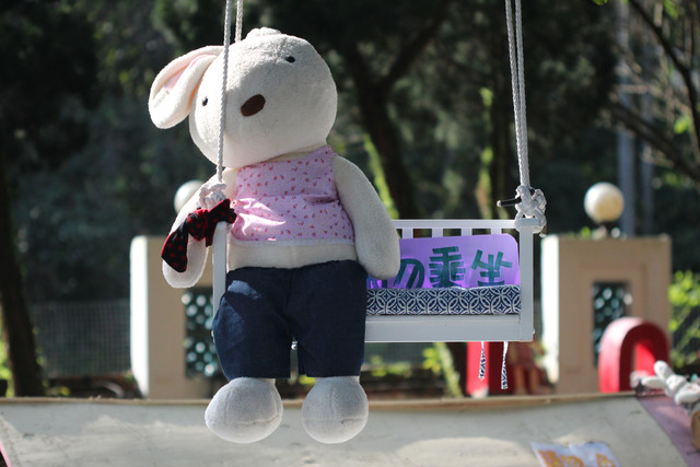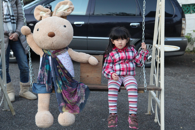 每樣遊樂設施~都讓潔潔開心的笑著呢~