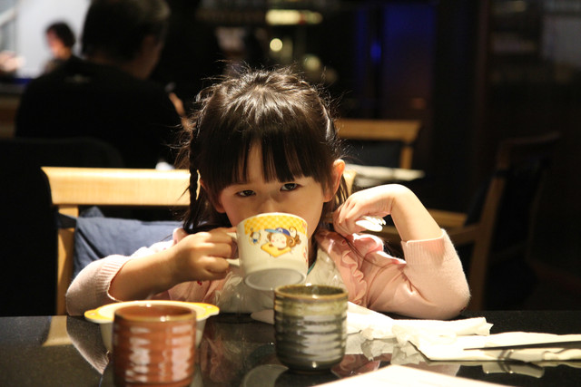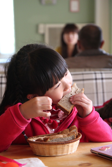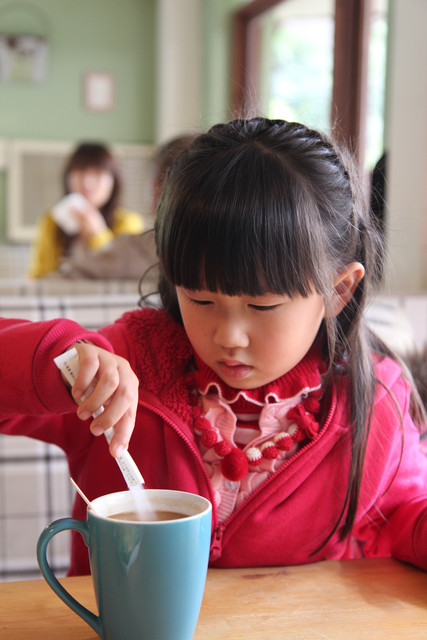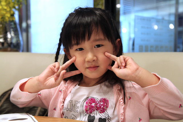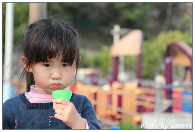 奶油吃光了~潔潔就開始孝順爸拔了~~